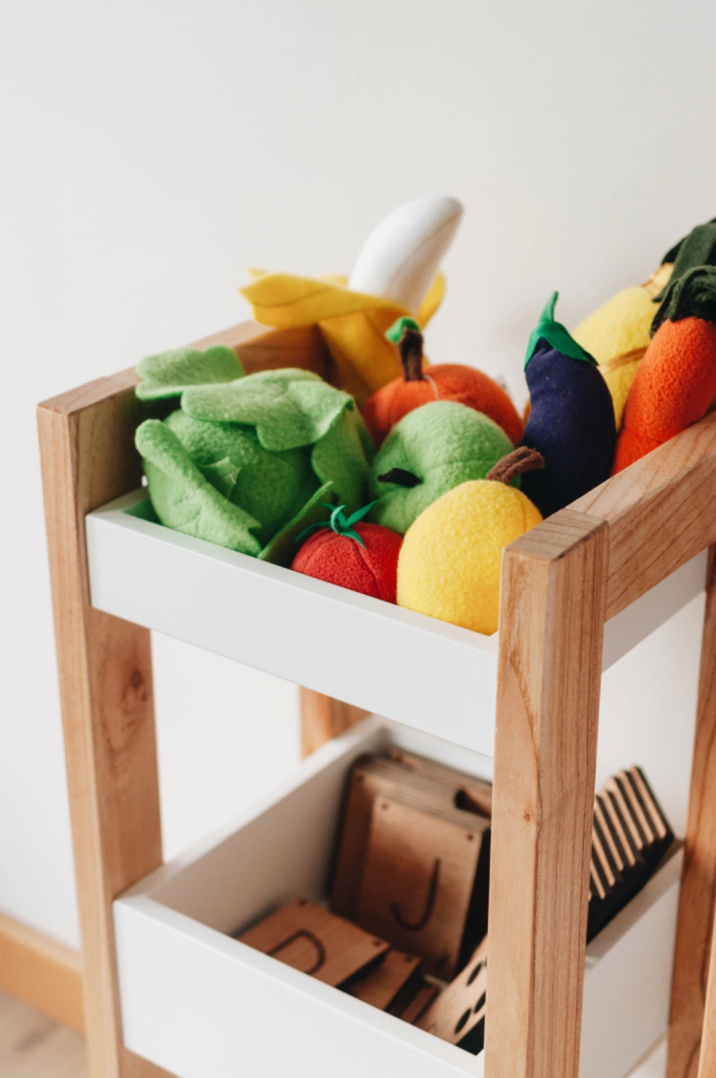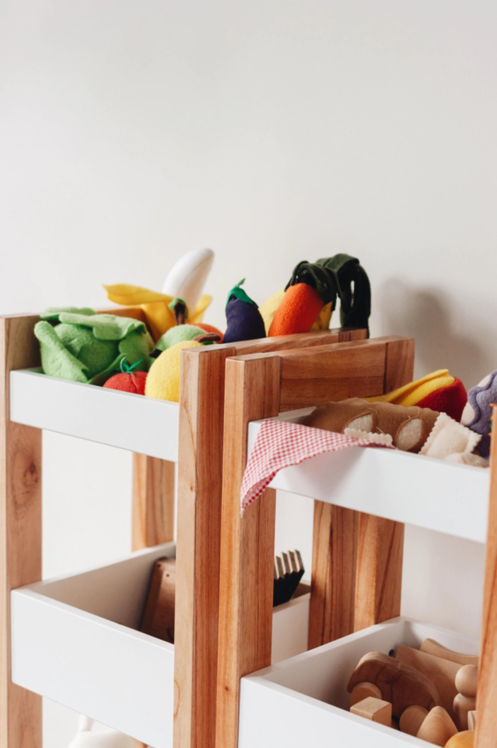 - Organizador con patas de madera maciza y 3 contenedores de MDF.