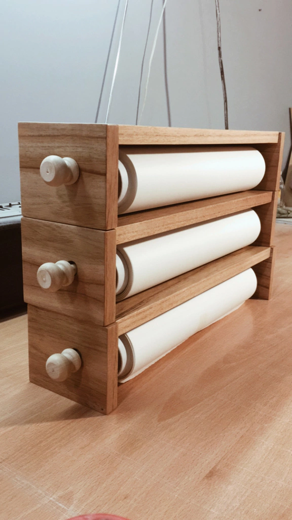 (Las fotos muestran portarollo realizado en paraíso y mdf.)